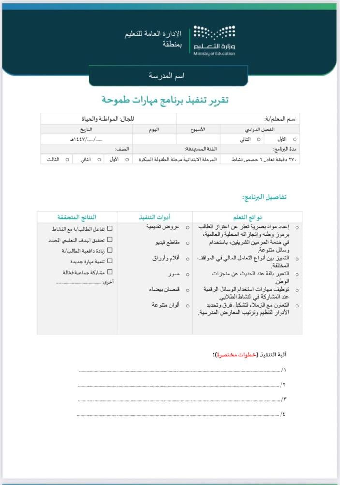 ⚠️ الملف مفتوح بصيغة وورد ليتناسب مع احتياجات المدرسة،